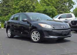 The 2009 Mazda Mazda5 Touring Automatic is a six-passenger, three-row compact minivan featuring a 2.3L 4-cylinder engine, a 5-speed automatic transmission, and front-wheel drive. The Touring trim includes standard 17-inch alloy wheels, a six-speaker sound system, and sliding rear doors. It has updated styling from previous models, including revised front and rear lighting and an updated center console, but its third-row seating is best suited for children.