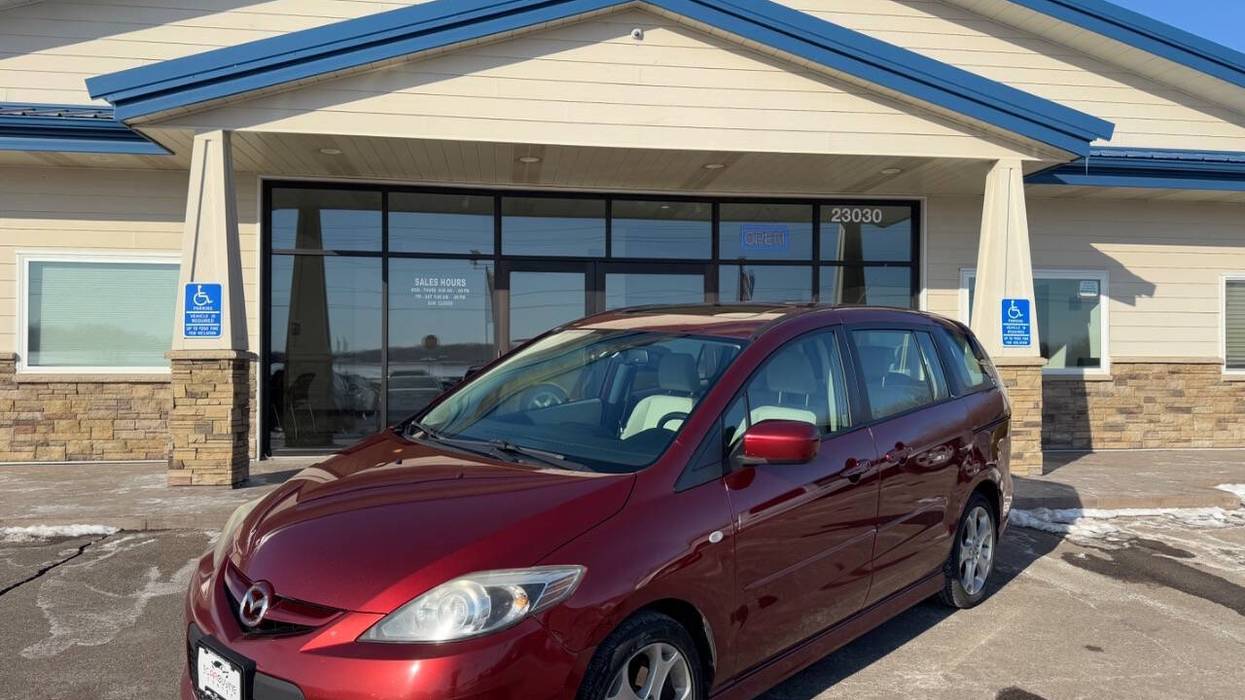 The 2009 Mazda Mazda5 Touring Automatic is a six-passenger, three-row compact minivan featuring a 2.3L 4-cylinder engine, a 5-speed automatic transmission, and front-wheel drive. The Touring trim includes standard 17-inch alloy wheels, a six-speaker sound system, and sliding rear doors. It has updated styling from previous models, including revised front and rear lighting and an updated center console, but its third-row seating is best suited for children.